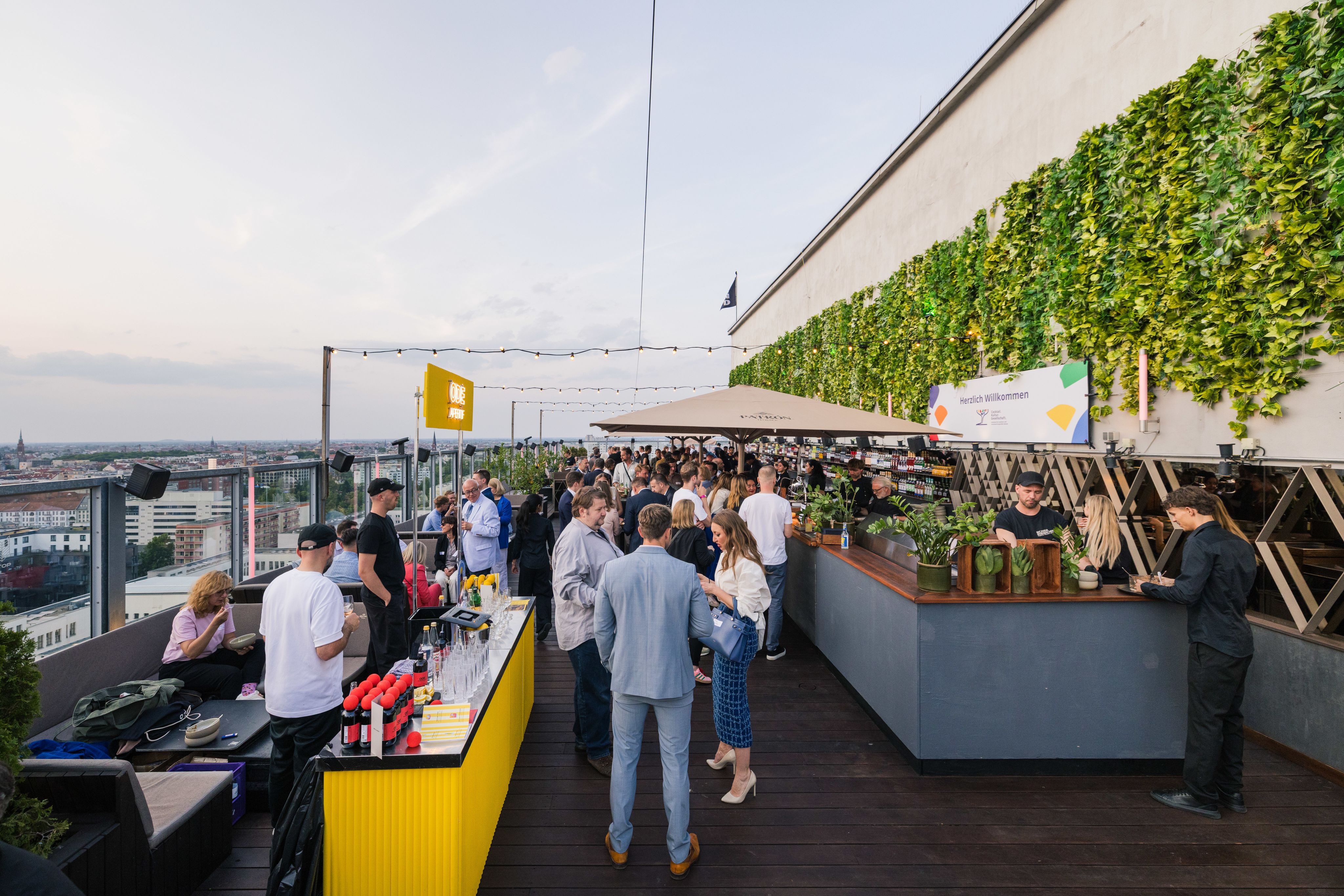 Nach dem fachlichen Input ließen die Gäste bei kreativen und exzellent gemixten Cocktails – mit und ohne Alkohol –, begleitet von einem Streetfood-Menu, den Abend beim persönlichen Austausch über den Dächern Berlins ausklingen.